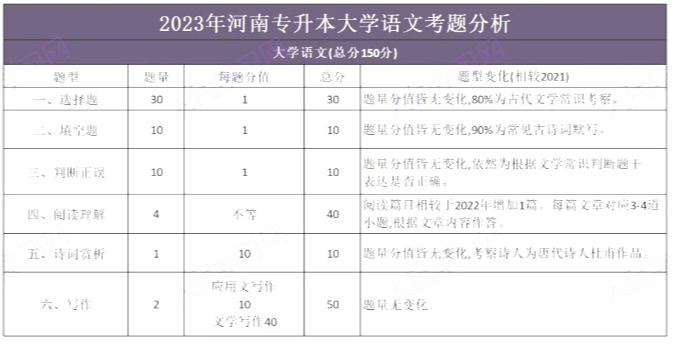 以上就是2024年河南专升本各科目考情分析的全部内容,希望大家能够取得自己心仪的成绩。如果大家想要知道更多关于河南专升本相关资讯,如河南专升本志愿填报,考试大纲,报考指南,考试科目,政策公告,备考资料。敬请关注河南专升本。