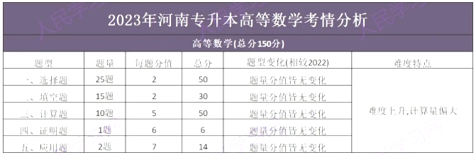 整体试卷仍侧重于极限的计算、函数的几何应用、积分的分部积分法、二重积分的计算等知识点。个别新颖的题目出题的知识点落在了“物理应用”上会让不少人在考场上感觉“难”和“偏”,甚至有人觉得想在“考研一样“不过根据近几年的考试表现出来的情况来看,计算能力的考察被命题人放在了第一位。并且河南专升本高数的学习本身的思路依旧是先基础再提高,先单元再多元。所以未来的备考,基础的知识和章节,以及计算熟练度和速度的提升依旧是关键!
