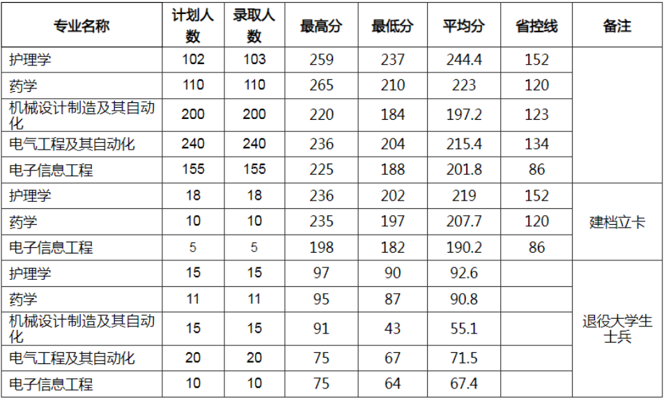 | 院校 | 专业名称 | 学制 | 省控线 | 备注 |