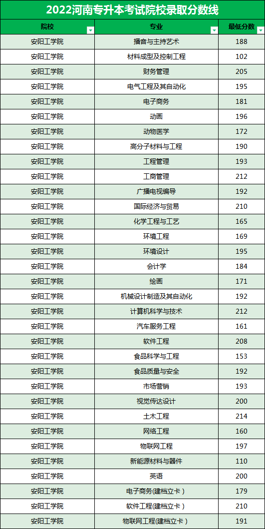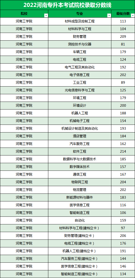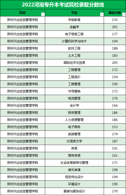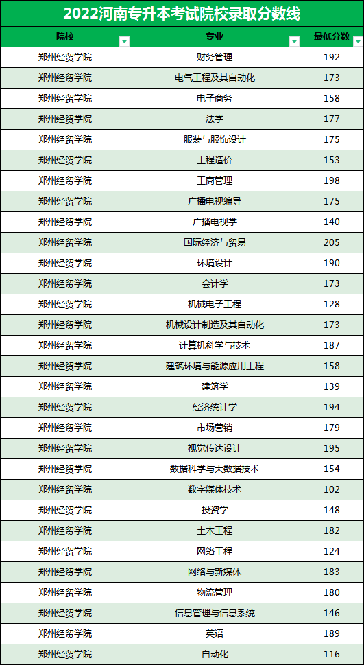 2022年河南专升本考试一共47所招生,目前已经24所院校公布,具体分数线如下:
