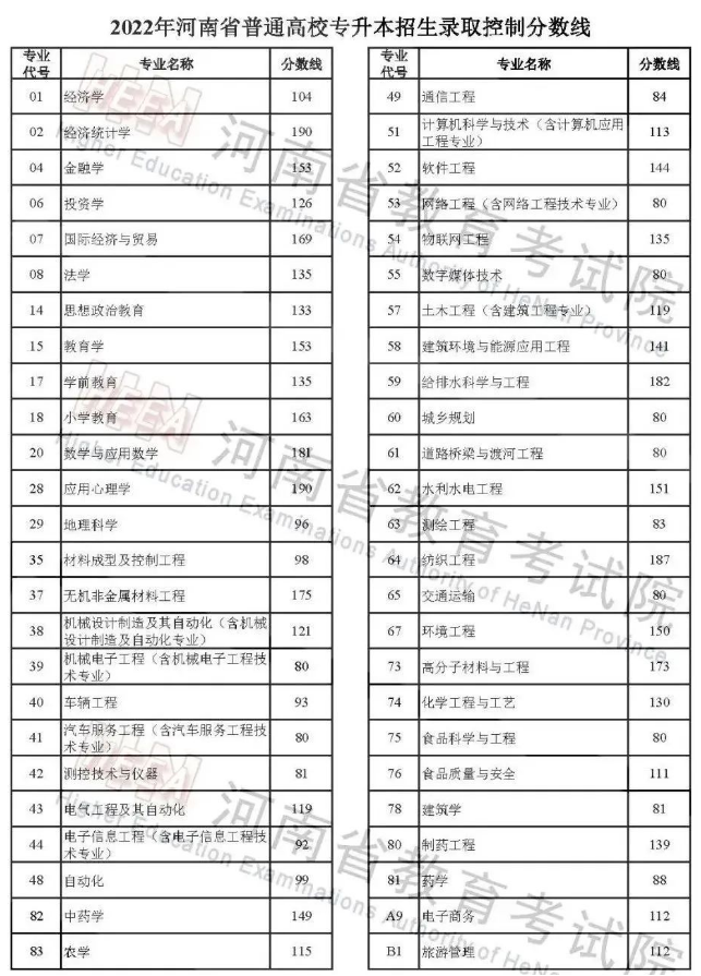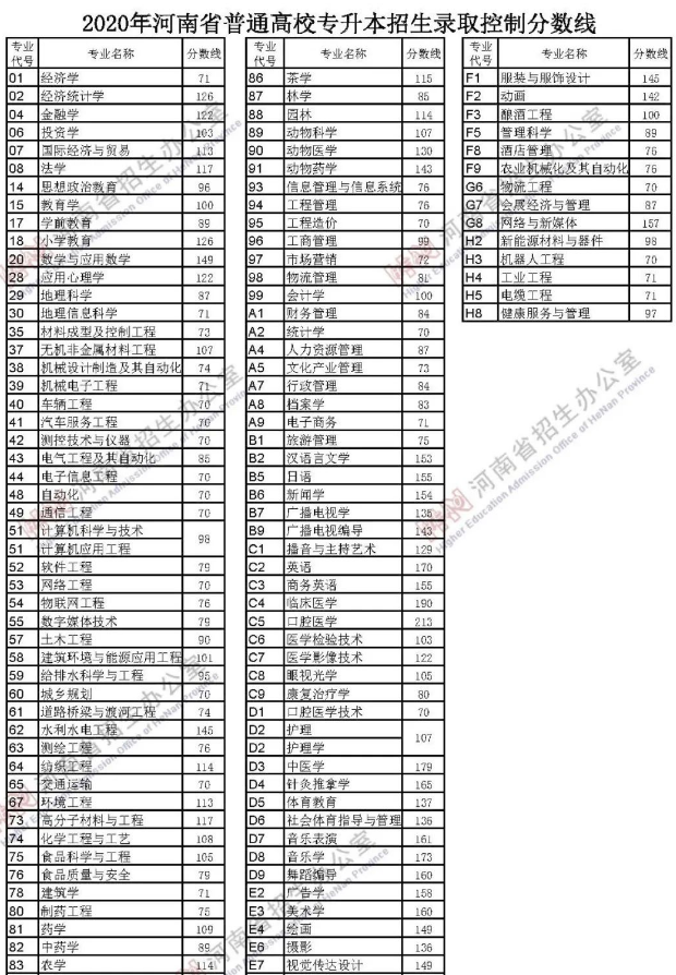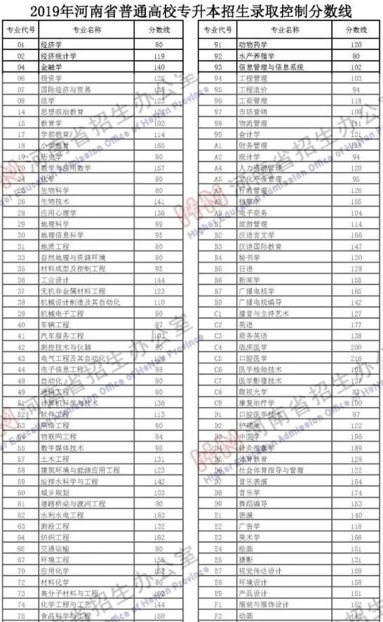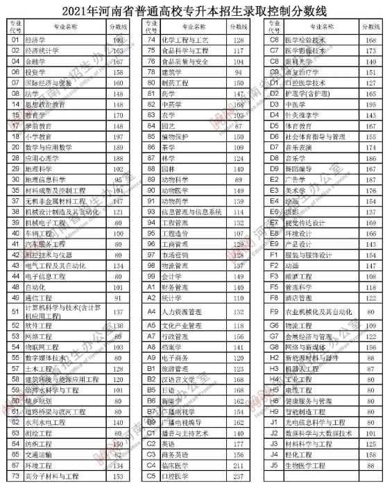 河南普通高校专升本招生录取控制分数线,省招办按照国家有关文件规定,根据当年招生计划、全省考生统考成绩统计表等因素,按略大于招生计划数确定各批各类录取控制分数线。