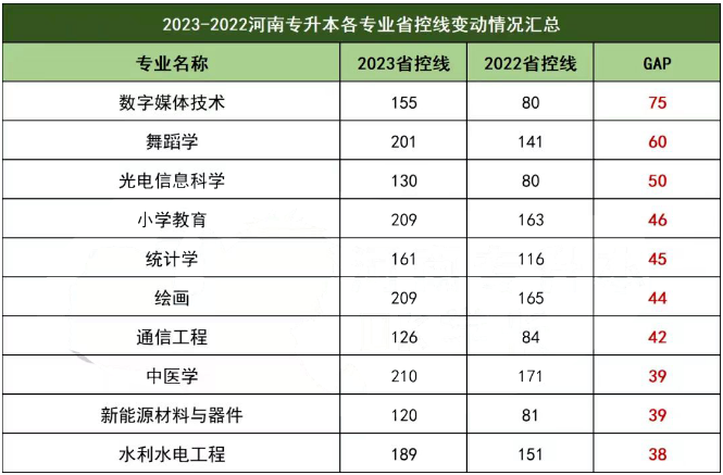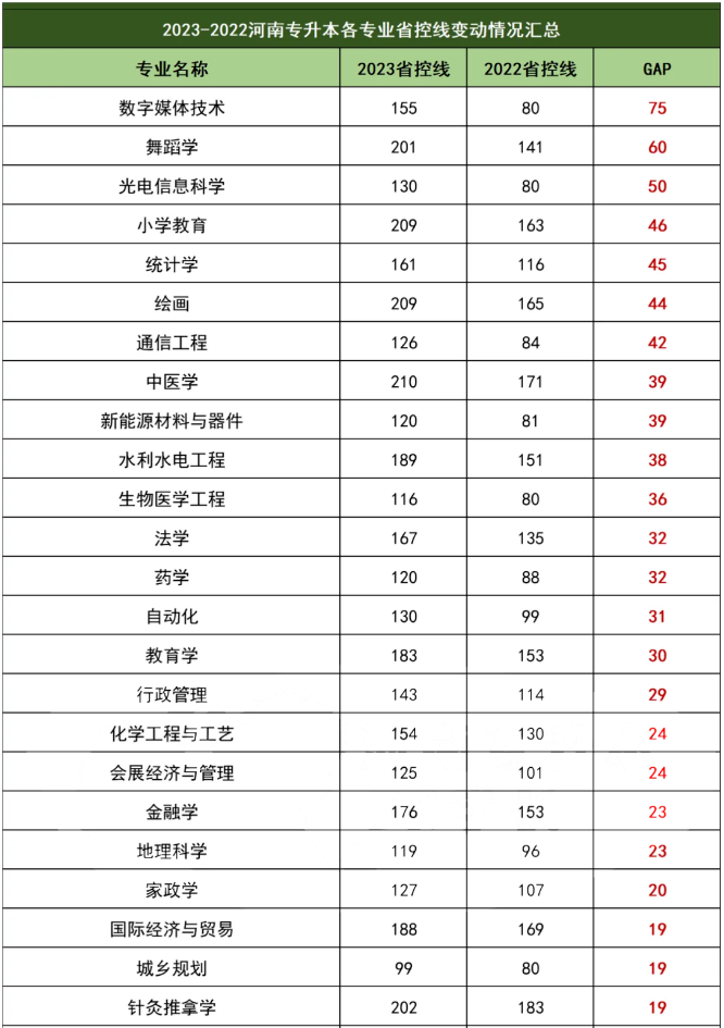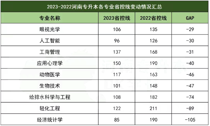 2023河南专升本各专业省控线 成绩变动情况汇总