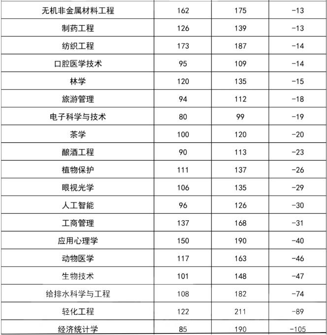 眼视光学、人工智能、工商管理、应用心理学、动物医学、生物技术、给排水科学与工程、轻化工程、经济统计学。