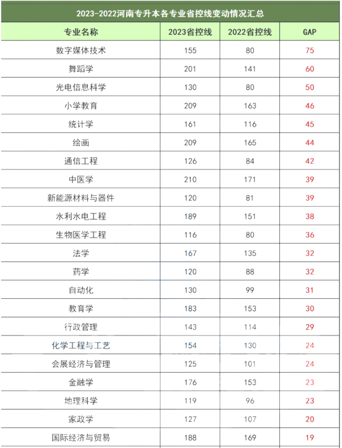 近两年河南专升本分数线变化对比
