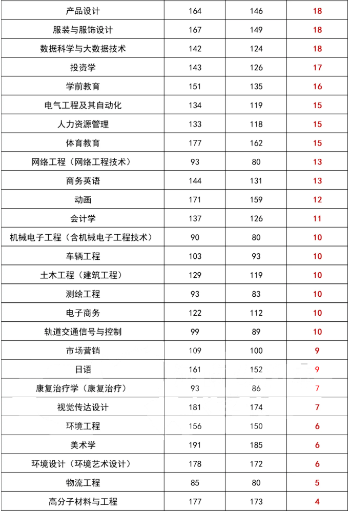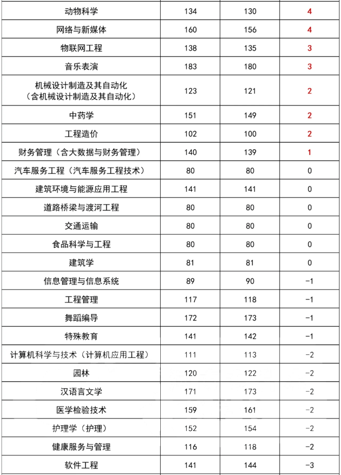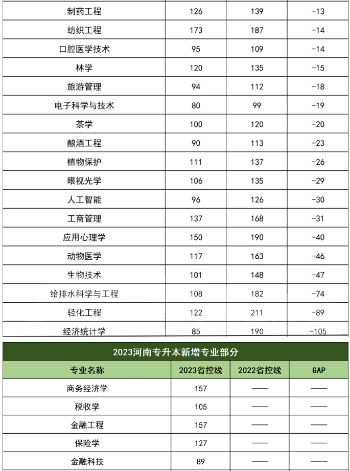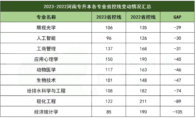 河南专升本各专业省控线成绩变动情况汇总