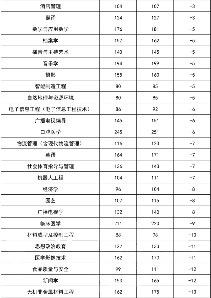 分数下降最多的本科专业TOP10