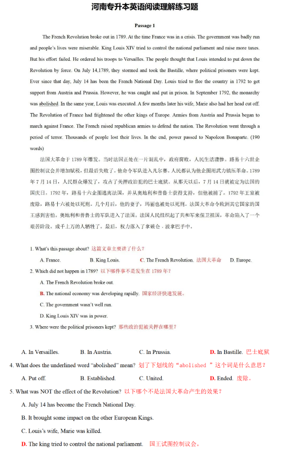 以上就是2023年河南专升本英语阅读理解真题的全部内容,希望大家能够取得自己心仪的成绩。如果大家想要知道更多关于河南专升本相关资讯,如河南专升本考试科目,考试大纲,报考指南,考试科目,政策公告,备考资料。敬请关注河南专升本。
