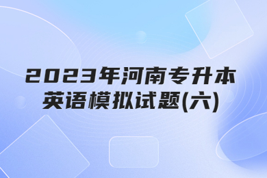 以上就是2023年河南专升本英语模拟试题(六)的全部内容,希望大家能够取得自己心仪的成绩。如果大家想要知道更多关于河南专升本相关资讯,如河南专升本招生院校,考试大纲,报考指南,考试科目,政策公告,备考资料。敬请关注河南专升本。