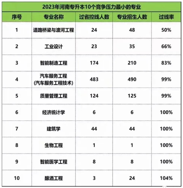 河南专升本竞争力较小的专业