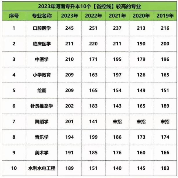河南专升本省控线较高的专业