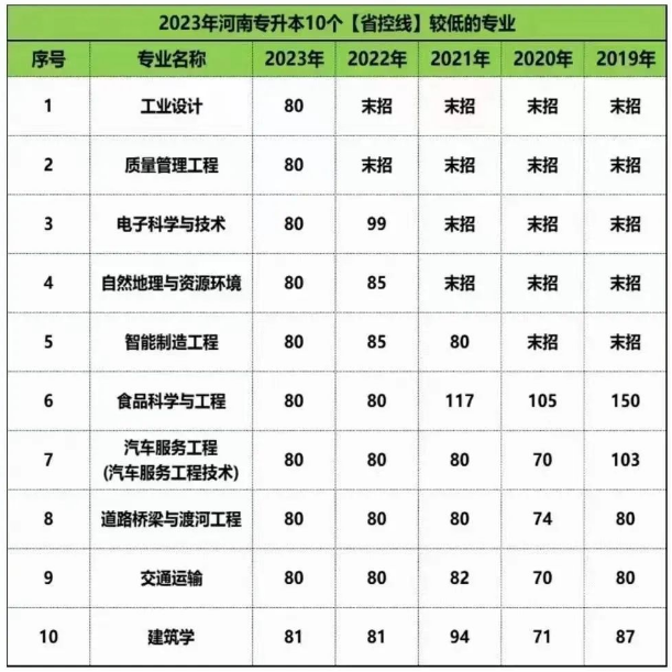 河南专升本省控线较低的专业