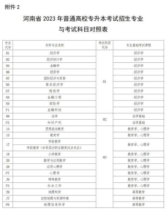 以上就是2023年河南专升本招生专业与考试科目对照表的全部内容,希望大家能够取得自己心仪的成绩。如果大家想要知道更多关于河南专升本相关资讯,如河南专升本常见问题,考试大纲,报考指南,考试科目,政策公告,备考资料。敬请关注河南专升本。