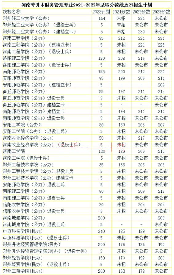 2024年河南省专升本财务管理分数线及招生计划汇总