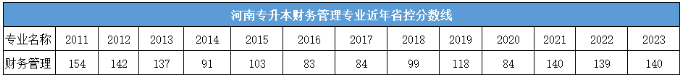 河南专升本财务管理专业2011年的省控线比较高,达到了154分,2023年的省控线是140分。