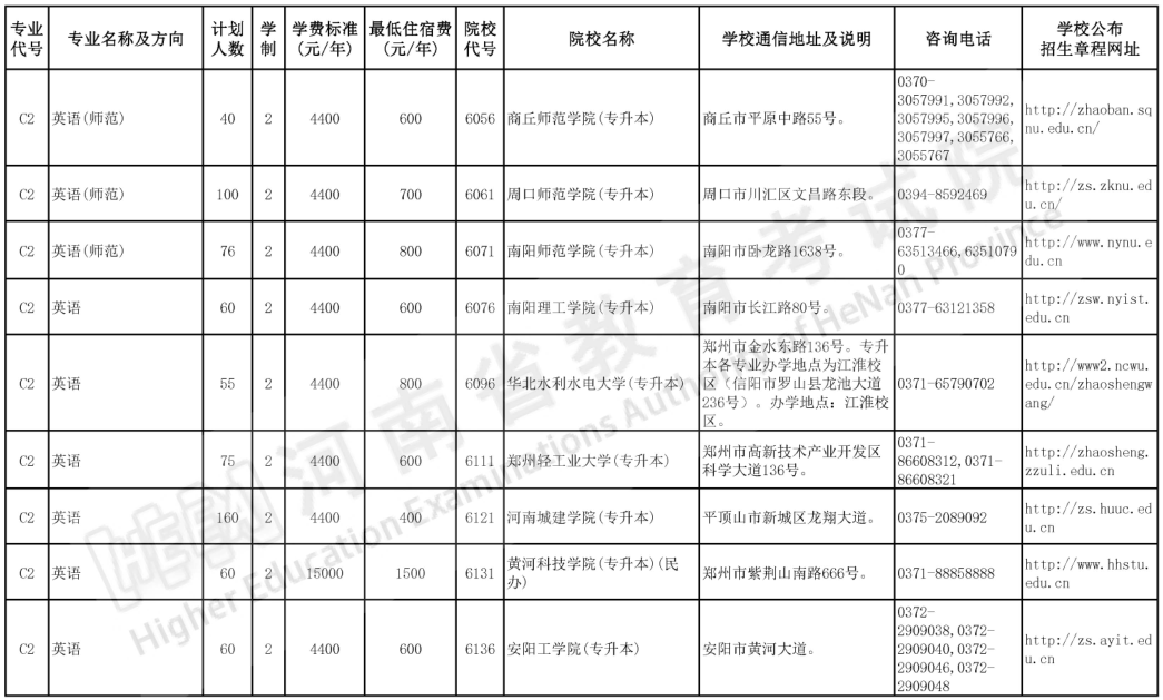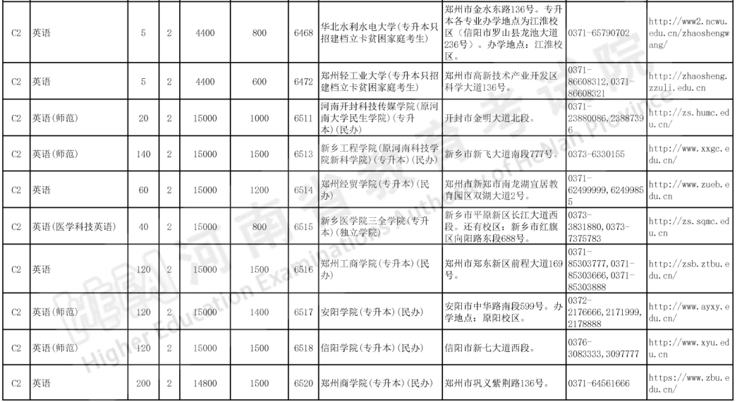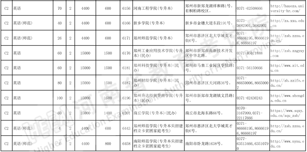 2023年河南专升本英语招生计划及招生院校