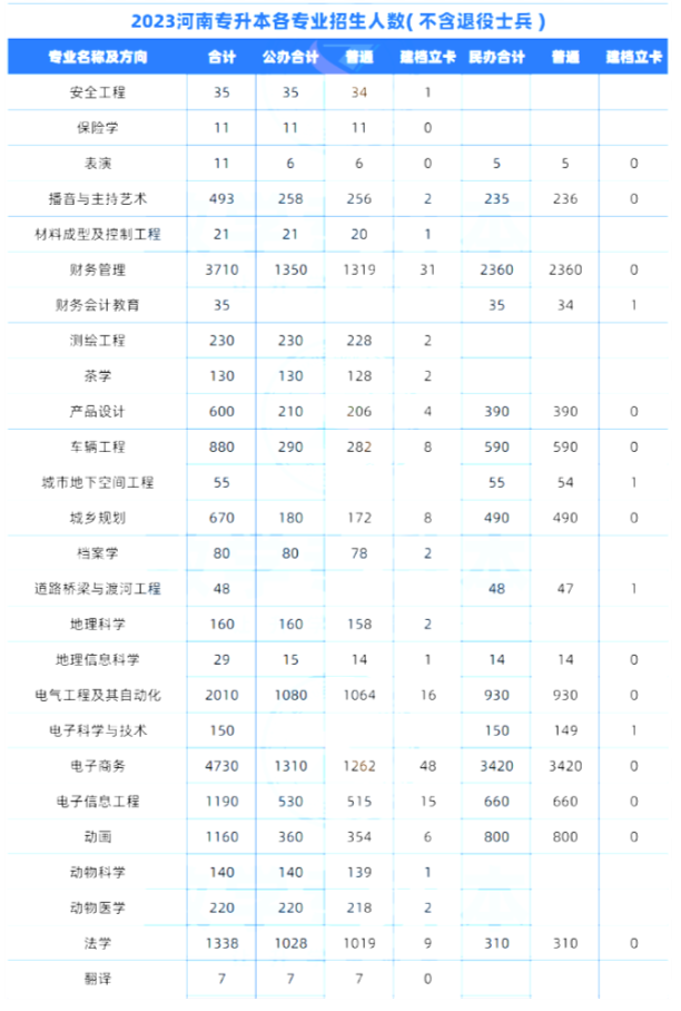 河南专升本招生人数最多的十大专业(不含退役士兵)
