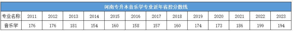 河南专升本音乐学2017年的省控线比较低,达到157分;2023年的省控线达到194分。