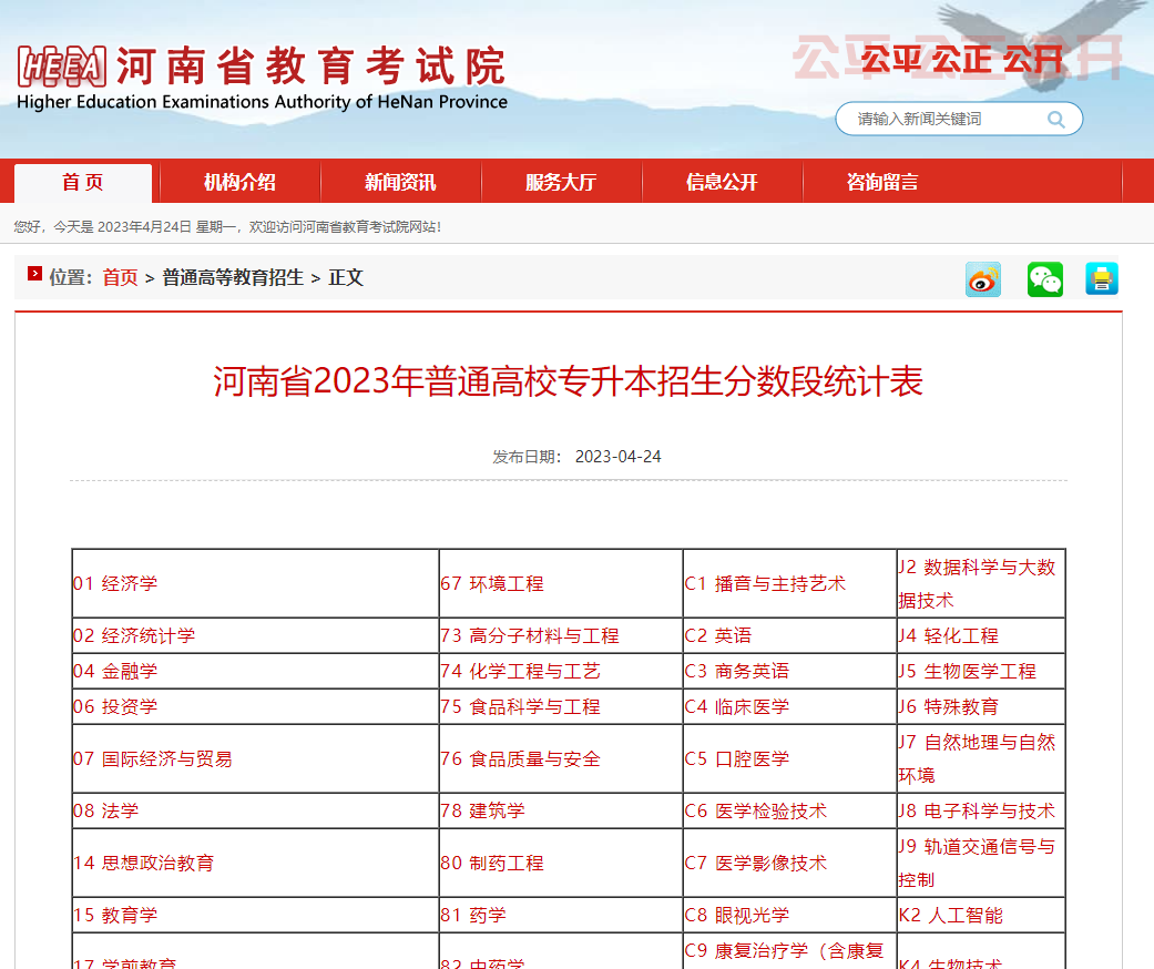 以上就是2023年河南省专升本招生分数段统计表的全部内容,希望大家能够取得自己心仪的成绩。如果大家想要知道更多关于河南专升本相关资讯,如河南专升本报名条件,考试大纲,报考指南,考试科目,政策公告,备考资料。敬请关注河南专升本。